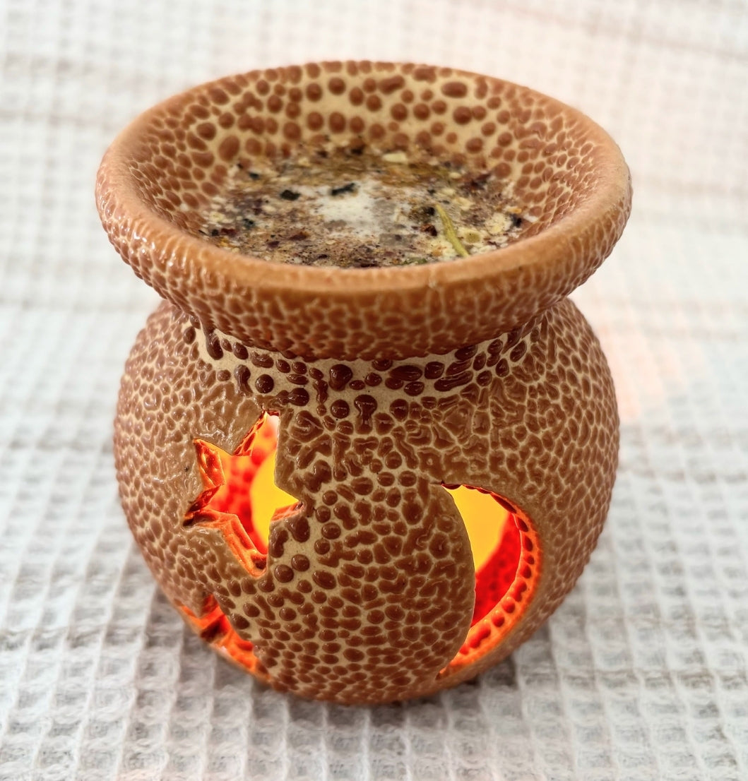 Une méthode plus moderne et idéale pour les petits espaces consiste à utiliser un diffuseur à cire ou à huiles essentielles. Il suffit de mélanger l’encens avec de l’eau et de verser le tout dans le réservoir du diffuseur. Ce système est adapté aux personnes vivant avec des animaux sensibles, car il ne produit pas de fumée, tout en diffusant un parfum subtil.